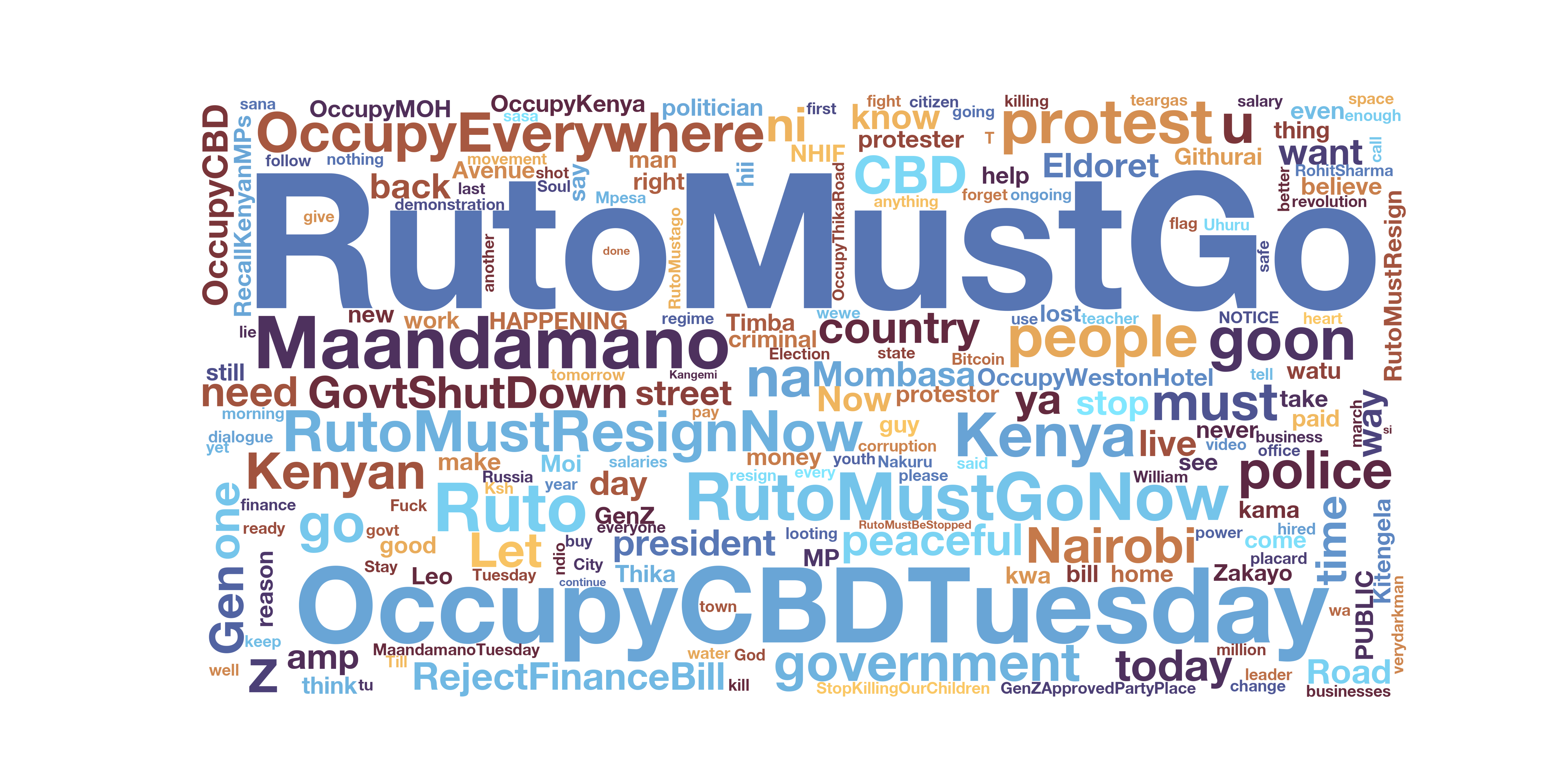 Ruto Must Go maintains its predominance with a call to Occupy the central business district on Tuesday. Important to note that even as the hashtags and opinions change, the call for the president to resign and go is still maintained.