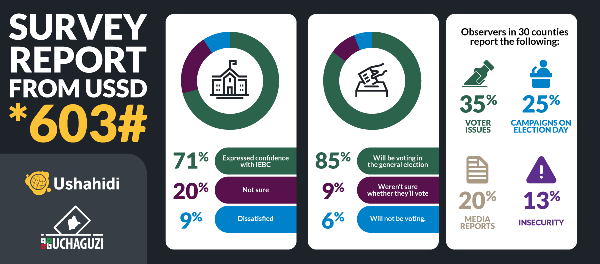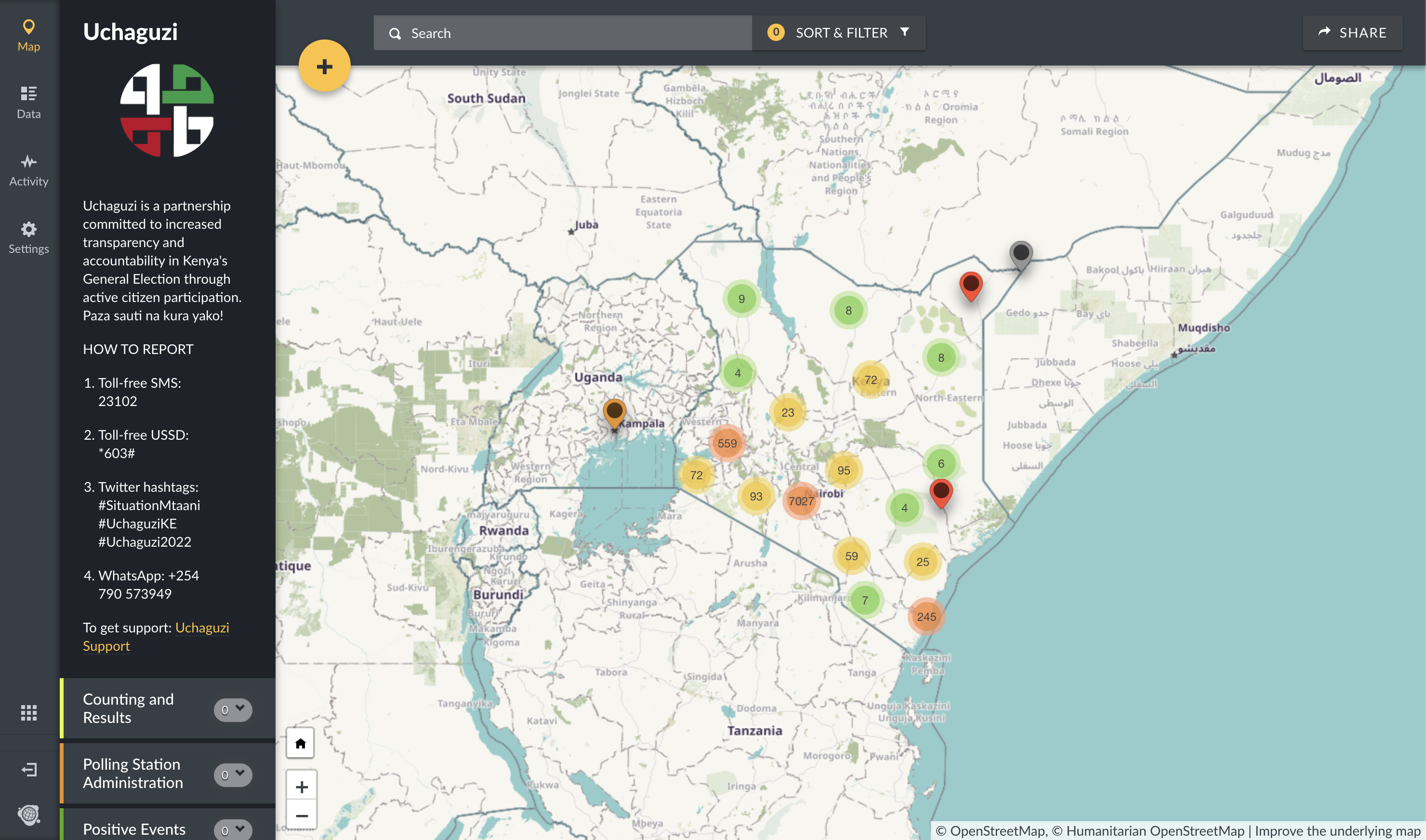 On 9th August, 2022, many Kenyans took to the polls for General Elections. As is the case with every Kenyan election since Ushahidi's inception in 2008, the team has co-convened the Uchaguzi project in partnership with ELOG Kenya and 20 other partner organisations. The goal is to empower ordinary Kenyans to share real-time information around the elections and for actionable information to be escalated for rapid response and action.