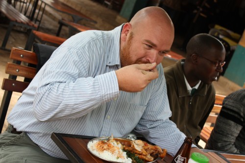 Henry is a developer at Ushahidi and works mainly from Accra, Ghana but since he came to Nairobi, he does not feel like going home. Its always nice to welcome people and have some group lunch but he was the one delaying us, or so I thought.