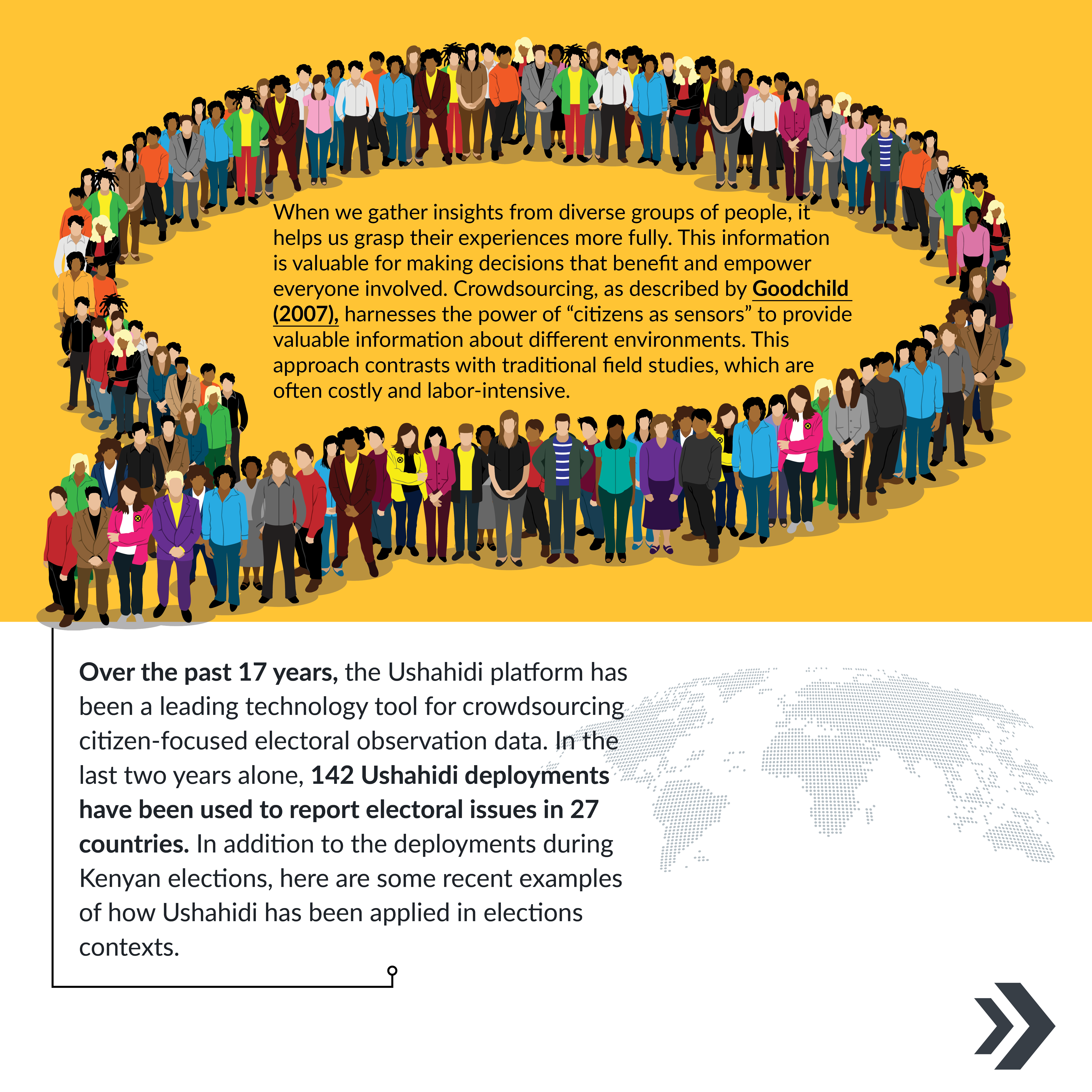 Over the past 17 years, the Ushahidi platform has been a leading technology tool for crowdsourcing citizen-focused electoral observation data. In the last two years alone, 142 Ushahidi deployments have been used to report electoral issues in 27 countries. In addition to the deployments during Kenyan elections, here are some recent examples of how Ushahidi has been applied in elections contexts.